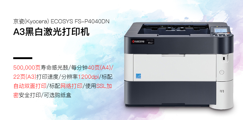 京瓷打印機P4040dn 京瓷打印機 A3黑白激光打印機 自動雙...